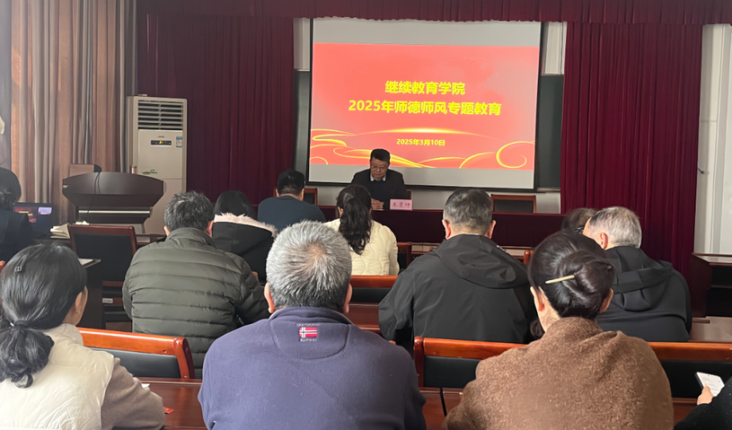 3月10日下午,继续教育学院组织全体教职工开展了师德师风专题教育活动。本次活动通过专题学习、讨论交流等形式,深入贯彻国家关于教育工作的各项方针政策,强化师德师风建设。