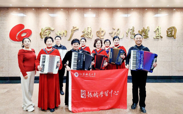 2025年1月9日“情暖夕阳”徐州市老年春晚在徐州市电视台录制,江苏师范大学银龄学习中心、金色年华艺术中心的手风琴班凭借《共青团员之歌》这一精彩节目,成功登上2025年徐州市老年春晚的舞台。