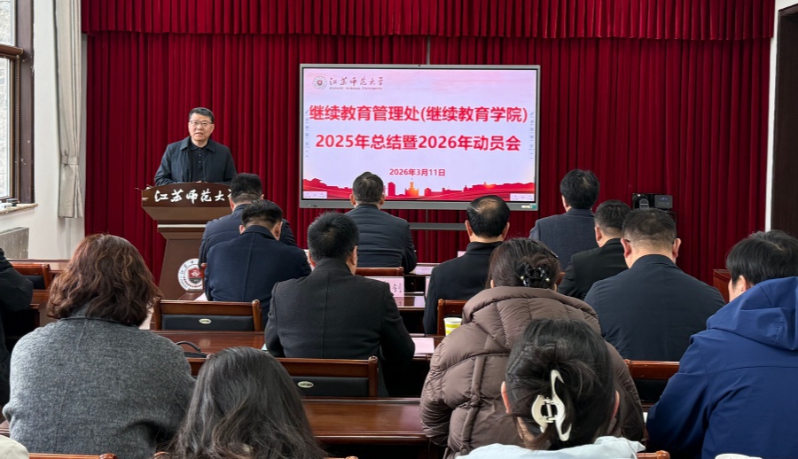 2026年3月11日,继续教育管理处2025年工作总结暨2026年工作动员会在云龙校区4号楼219会议室召开。校党委常委、副校长黄德志出席会议并讲话,继续教育管理处全体教职工、社招项目负责人参会。会议由处长朱景坤主持。