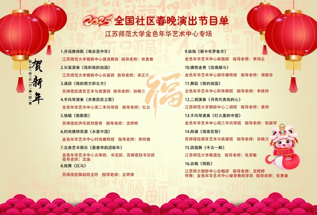 12月12日(周四)下午2点,全国社区春晚文艺汇演选拔活动将在江苏师范大学泉山校区马可音乐厅隆重举办。